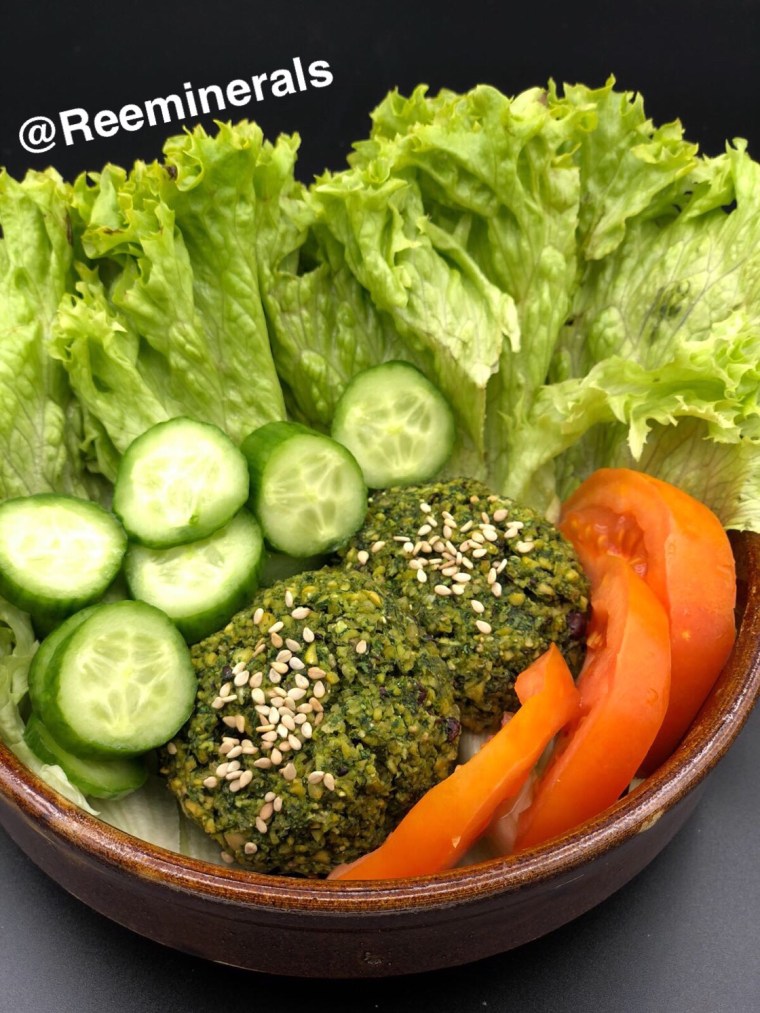 (تخلط المكونات وتكوّر وتغطى بمسحه من زيت الزيتون >> بالفرن نصف ساعة بدرجة حرارة ١٨٠ )