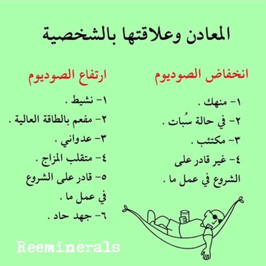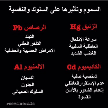 معادن الفرد لها تأثير على العقل والشخصيه والسلوك، ارتفاع او انخفاض بعض المعادن مرتبطة بمشاعر او سلوكيات محددة…