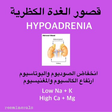 قصور الكظر >> هذا قد يؤدي إلى انخفاض ضغط الدم، نقص ضغط الدم الوضعي، والتعب والاجهاد.