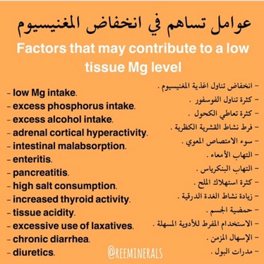 الكالسيوم والمغنيسيوم لهم تأثير مهدئ على الجهاز العصبي المركزي … فإذا انخفض الكالسيوم مع المغنيسيوم يحدث زيادة تحفيز الجهاز العصبي … والناتج هو فرط النشاط واحيانا القلق.